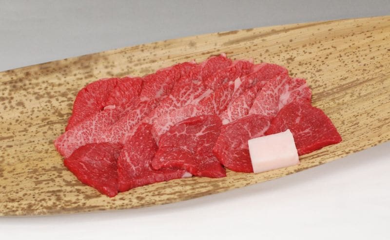 【松阪肉元祖和田金】の焼肉竹皮包(カタ・モモ・バラ)でございます。赤身と脂身の両方をお楽しみいただける商品です。焼肉、バーベキュー等の際に、ぜひご利用くださいませ。