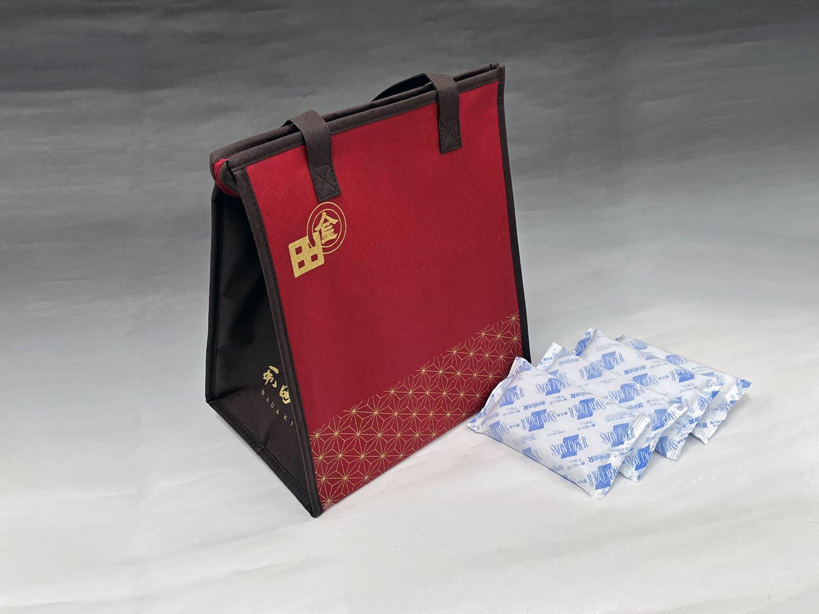 和田金のロゴが入った保冷バッグでございます。